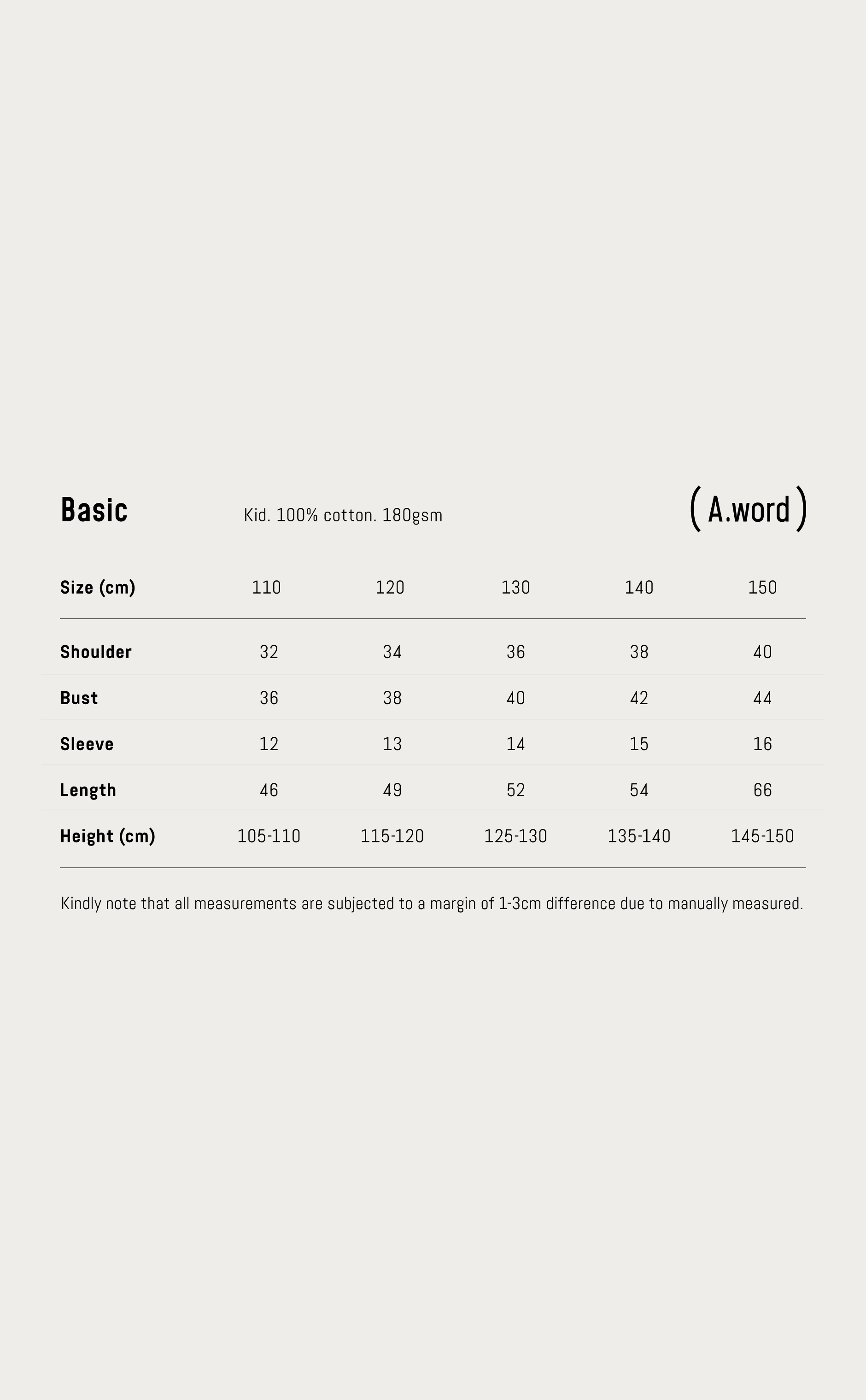 Kid's Basic Fit Size Chart